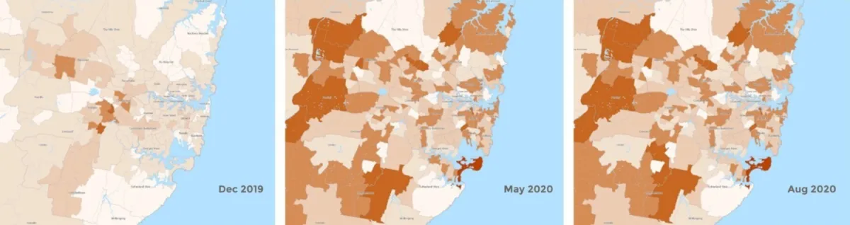 USING THIS MAP, WE CAN SEE WHERE FOOD INSECURITY EXISTS, WHERE FOOD RELIEF IS CURRENTLY GOING, AND WHERE SUPPORT IS STILL NEEDED RIGHT DOWN TO THE SUBURB LEVEL.